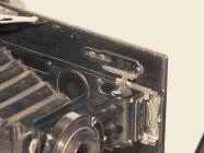 l'orientation que l'on voulait donner à la photographie. La présence d'un petit pied permet de mettre l'appareil au niveau lorqu'il est en orientation paysage. Ce modèle est également équipé d'une échelle des distances. Les modèles bas de gammes de cette série avaient un foyer fixe et un obturateur monovitesse.